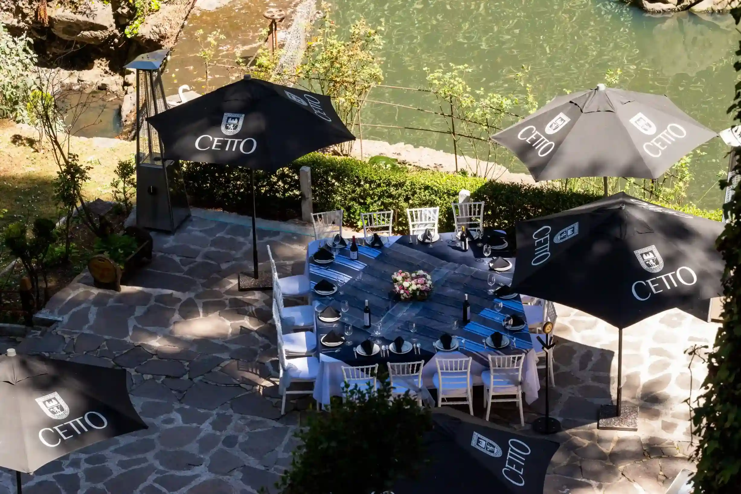 Ofrece desayuno buffet los fines de semana con música en vivo, y un ambiente ideal para celebraciones con capacidad de hasta 500 personas. Además, dispone de un bar con música de piano y juegos infantiles, lo que lo convierte en un lugar perfecto para disfrutar en familia y relajarse en contacto con la naturaleza.