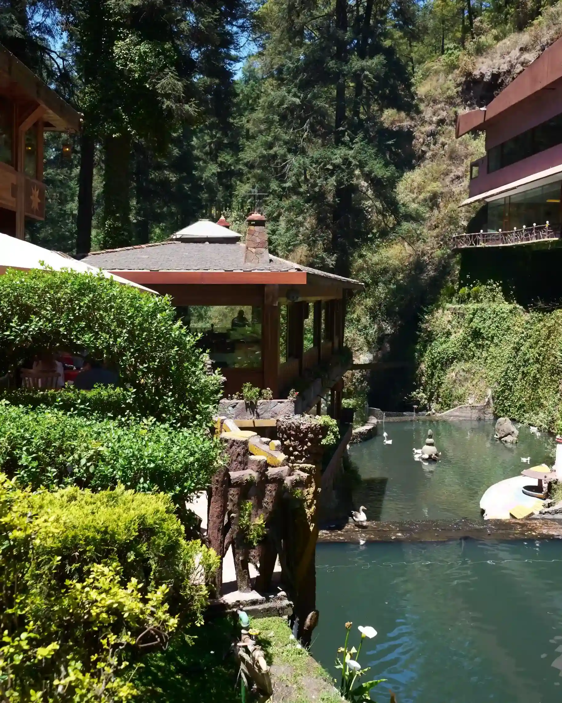 La Escondida es un encantador restaurante ubicado en el kilómetro 38.5 de la carretera México-Toluca, rodeado de naturaleza en la Marquesa. Su arquitectura de estilo austriaco y su entorno boscoso con ríos y cascadas lo convierten en un sitio único y escondido a simple vista.