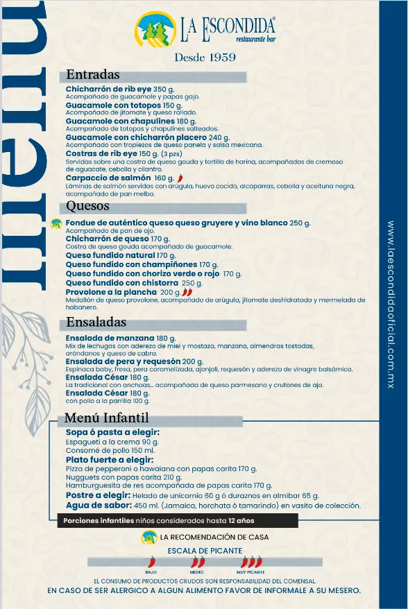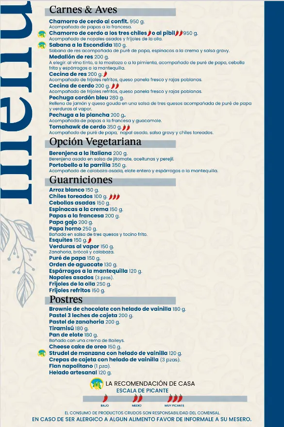 "Ofrecemos un exclusivo y variado menú a la carta disponible durante toda la semana."